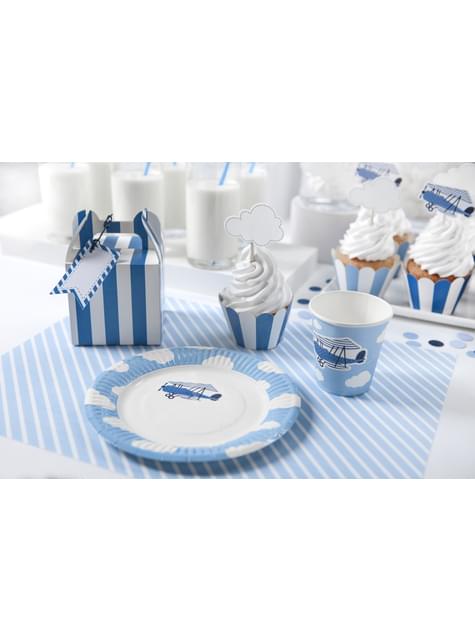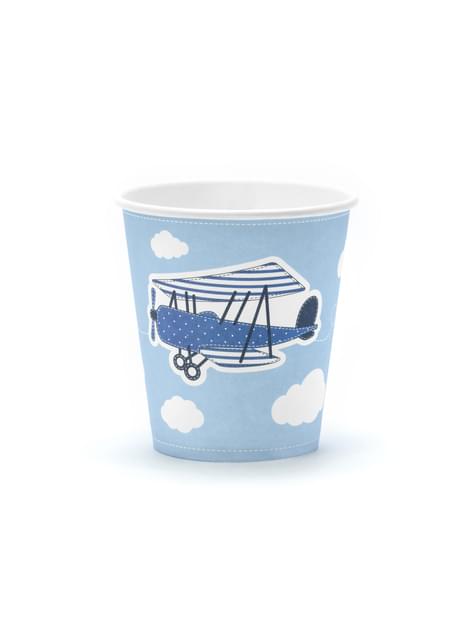 6 gobelets bleu motifs avion en carton - Little Plane