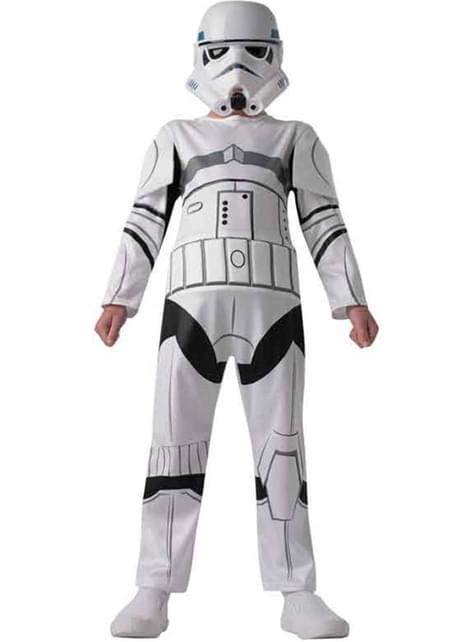 Ce costume de Stormtrooper ou soldat impérial comprend une combinaison blanche avec quelques détails en couleur noir et gris et un masque de Stormtrooper