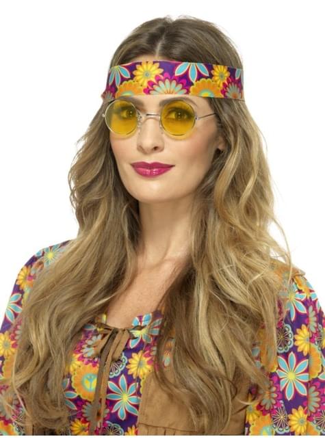 Lunettes hippie rondes jaunes adulte